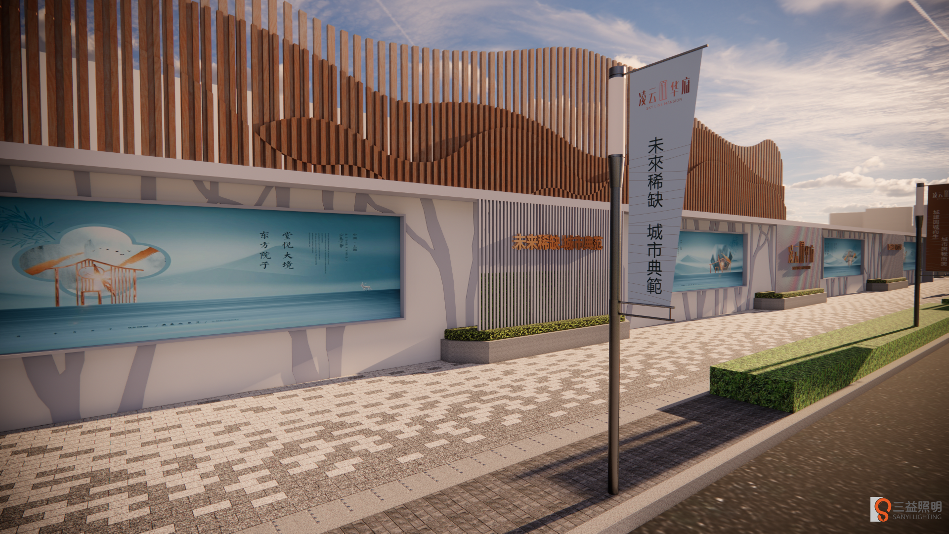 本次看樓通道設(shè)計從梨園路往寶安北路口開始,進行看樓通道布置設(shè)計,包括路口精神保壘、工地圍墻、項目營銷中心入口、負(fù)一層到負(fù)三層看樓通道布置。